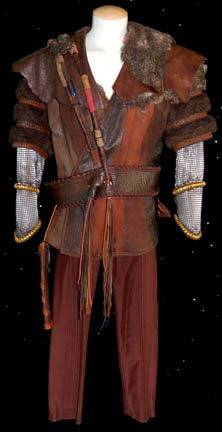 This imposing Klingon costume was made for wear during the Star Trek: Enterprise series. The coat is made of stitched brown and tan leather pieces with an assortment of leather and faux fur pieces attached to the shoulders for detail. The sleeves are made from a combination of faux fur … |