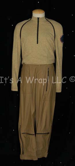 A costume featured in the Star Trek: Enterprise episodes like “The Breach” and “Marauders”. This costume consists of a pair of khaki trousers with multiple zippered pockets and a form fitting long sleeved tee-shirt with black piping a center zip at the neck, and the famous “Enterprise NX-01” assignment patch … |
