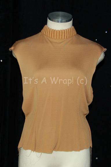 A costume item featured in various Star Trek feature films from “The Wrath of Kahn” to the opening scenes of “Generations. This item is a tan, sleeveless, Starfleet uniform undershirt in with a ribbed collar, clasps at the neck and a zip down the back. The hems are beginning to … |