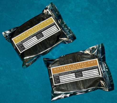 A pair of prop emergency rations packs featured in various episodes of Star Trek: Enterprise like “Damage”, “The Catwalk”, and “Shuttlepod One”. Used by various actors, these items are translucent silver packages, zip-sealed, with bowls inside meant to appear as microwaveable meals. The exterior of the packaging features brilliant Starfleet … |