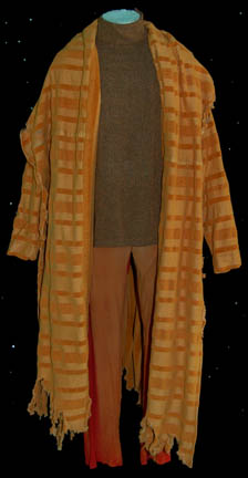 A costume featured in the Star Trek: Enterprise episode “Awakening”, wherein “Captain Archer” (Scott Bakula) and “T'Pol” (Jolene Blalock) encounter a renegade group of Vulcans responsible for the bombing of the Earth Embassy on Vulcan. The costume is a long-sleeved, rust/black colored shirt with a zip down the back, red … |