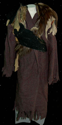 A Rura Penthe Kling Guard costume presumably featured in Star Trek VI: The Undiscovered Country. The costume is large grey trousers with an elastic waist, a large grey and red wool coat with frayed sleeve ends, and a large shoulder and chest covering made from multiple fabrics and fur. The … |