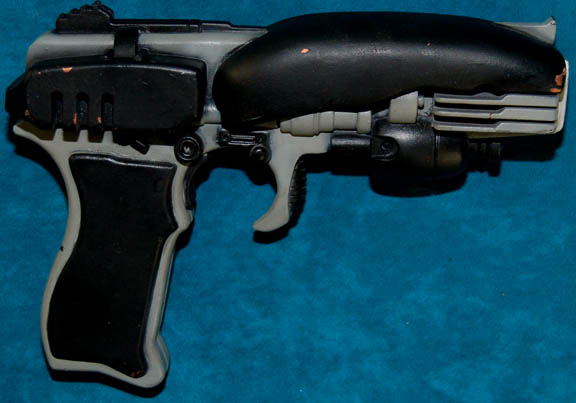 A prop weapon featured in the Star Trek: Enterprise episode “Canamar” wherein “Captain Archer” (Scott Bakula) and “Commander Tucker” (Connor Trinneer) are mistakenly arrested and incarcerated in the infamous “Canamar” penal facility. This prop weapon is rubber cast in gray featuring black accents, molded rubber components, and is in excellent … |