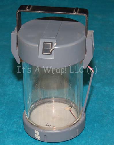 A prop lantern like those appearing in the Star Trek: Enterprise episode “Breaking the Ice”. The item is made from a large clear glass jar with molded resin ends, a static position metal carry handle, and working internal lights. The item is powered by four internally mounted Surefire name brand … |