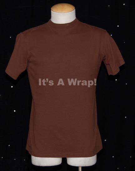 A costume element featured in various episodes of Star Trek: Enterprise for wear by Steven Culp as the M.A.C.O “Major Hayes”. This is item is a short-sleeved, brown t-shirt for wear beneath a M.A.C.O. uniform. A sewn in Enterprise tag reads ‘Steve Culp’. |