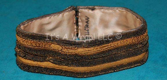 A costume necklace featured in Star Trek IX: Insurrection for wear by a performer playing a Tarlac nurse. The item is gold and bronze colored rubber texture material with a gold colored interior lining. It joins at its ends by way of hooks and clasps and is inscribed erroneously as … |