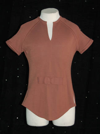 A brown class-B short sleeved uniform shirt with a placement for a bio-monitor. A ‘Western Costume Co.' tag inside reads ‘Buckingham, chest 42’. |