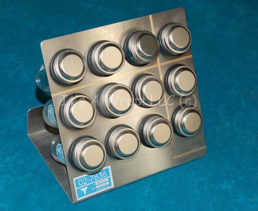 A set of twelve set dressing jars and a metal rack appearing variously in episodes of Star Trek: Enterprise on the set of the “Enterprise NX-01” sickbay. The rack is polished metal with a base that allows for the item to stand or be mounted on a wall, with metallic … |