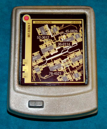 A prop PADD (Personal Access Display Device) featured in various episodes of Star Trek: Enterprise. The item is molded plastic with a backlit graphical application affixed to its display ‘screen' depicting circuitry with numeric values. The item is activated by depressing an internal button with a small pin-like instrument (not … |