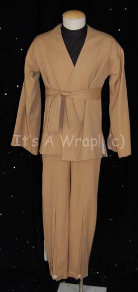 A costume featured in the first Star Trek feature film. This costume is a Class-C Starfleet uniform comprised of tan trousers, a matching jacket which wraps around the torso and features Velcro placement to hold the jacket closed, corresponding belt that goes around the jacket, and a black sleeveless undershirt. … |