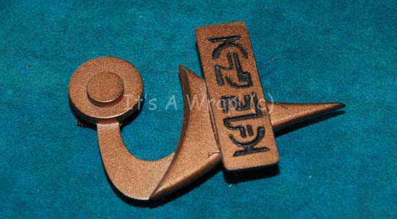 A frequently reoccurring alien badge appearing in multiple episodes of Star Trek episodic television. The item appeared as an Angosian badge in the Star Trek: The Next Generation episode “The Hunted”, altered for later use on the crew of the marauder ship in the episodes “Gambit, Parts I and II”, … |