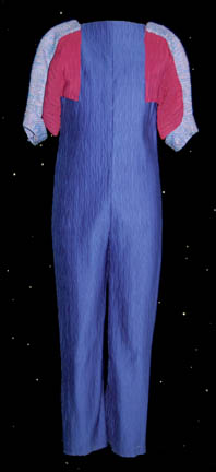 A costume type featured in multiple Star Trek: The Next Generation episodes for wear by Federation scientists and researchers. This item appeared in the episode “A Matter of Time” and is made up of a full length jumpsuit with gray and light plum colored fabric and multiple reflective strips at … |