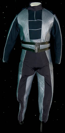 “Nydrom” (Larry Cedar) was a scientist of the T'Lani fleet during the Deep Space Nine episode “Armageddon Game”. This is his scientist costume and includes a long sleeve brown ribbed jumpsuit with the thumbs, ring and pinky fingers built in. The flowing gray/green pants are crimped with cuffs at the … |