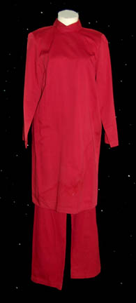 A red surgical gown worn by sickbay medics on board the “Enterprise-D” on Star Trek: The Next Generation during the episode “Samaritan Snare”. The costume is composed of ret pants, a red surgical smock, red head cap with open face, and red shoes. The item comes with a costumer's tag … |
