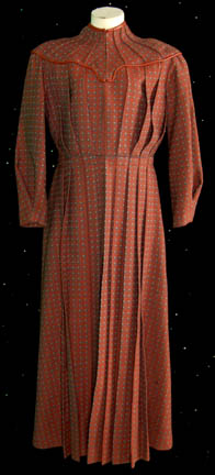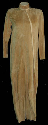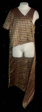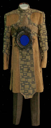 This Klingon costume was worn by a pilgrim at the Klingon monastery on Boreth where the famous “Kahless the Unforgettable's” clone (Kevin Conway) told the story of how his batleth was created. The costume is a brown floor length robe with pleats in the front and back and vinyl trim. … |