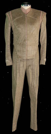 A costume featured in the Star Trek: Deep Space Nine episode “The Nagus”; wherein “Quark” (Armin Shimerman” temporarily becomes the “Grand Nagus” of the Ferengi Alliance. This costume is for wear by Barry Gordon in the role of the Ferengi “Nava”; it is a full-length, sleeveless, brown jumpsuit with stirrups … |