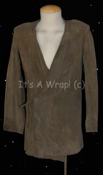 A green jumpsuit with green dyed leather shoulders and sleeves, label inside inscribed <I>Star Trek TNG</I> -- worn by Kirsten Dunst as Hedrel in "Dark Page" in <I>Star Trek: The Next Generation</I>; with corresponding wardrobe tag |