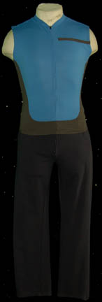 A costume featured in several episodes of Star Trek: Enterprise, "Proving Ground" and "Babel One" and "United", for the Andorian character "Lieutenant Talas" (Molly Brink), First Officer to "Shran" (Jeffrey Combs) aboard the Andorian Imperial Guard ship "Kumari". The costume is a long sleeved blue undershirt, a full length jumpsuit … |