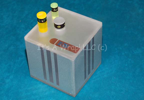 A data rod container featured in the Star Trek: Voyager episode “The Omega Directive”. The item is a cube shaped silver colored metal case with a clear acrylic cap on the bottom and a fogged acrylic cap on the top. The top has three differently sized circular openings for the … |