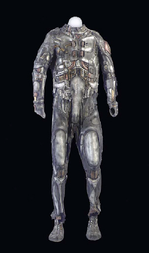 A two-piece Borg costume comprising: a jacket and jumpsuit, both made of cast latex painted as biomechanical hardware and a pair of Borg boots -- designed by Deborah Everton and used in <I>Star Trek: First Contact</I>, later modified by Robert Blackman for subsequent use on <I>Star Trek: Voyager</I> (4) |