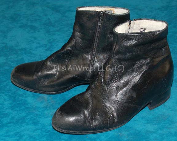 A pair of black leather men’s boots appearing variously in Star Trek episodic television and/or feature films and are compatible with generally any Starfleet uniform. The items feature black leather exteriors and white interiors, inside zips, and depict a degree of wear in visibly worn soles and slight scuffing on … |