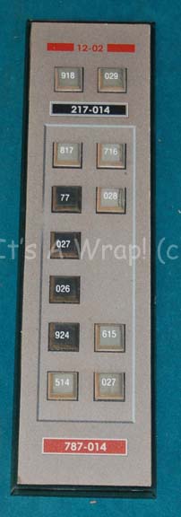 A set dressing button board like those appearing variously in episodes of Star Trek: Enterprise. The item is a sheet of acrylic with beveled edges and a graphical application adhered to the face that features adhered rubber faux buttons. The buttons are colored gray, black, and white. The item measures … |