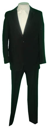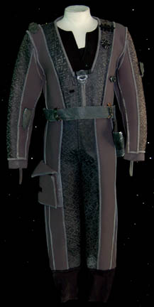 A costume featured in various Star Trek: Deep Space Nine episodes for wear by actors portraying Cardassian civilians and officials. Made up of grey trousers with a matching neoprene top, the costume comes with a costumer's tag reading ‘Mark Ricardi’. |