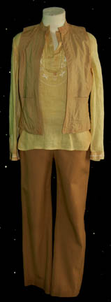 A costume featured in the Star Trek: Enterprise episode “The Communicator” for wear by “Hoshi Sato” (Linda Park) during opening scenes wherein an away team from “Enterprise NX-01” returns from an anthropological mission to a pre-warp society. The costume is made up of a pair of tan trousers with a … |