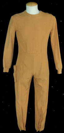 A tan colored Starfleet Class-D uniform jumpsuit featured in Star Trek I: The Motion Picture. The costume comes with unattached shoes, and unattached plastic bio-monitor, an unattached pair of orange sciences division-rank strips for the shoulders with inverted triangle accents indicating the wearer to be a ‘chief petty officer', and … |
