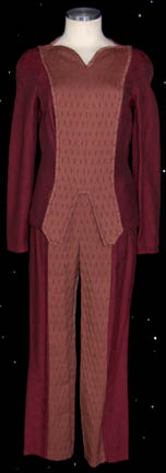 A costume featured first in the Star Trek: Enterprise episode “The Andorian Incident” and then later in “Cease Fire”. This costume consists of a long-sleeved, brown leather jacket featuring a faux reptile skin inset with textured accents, matching, raised stripes along the shoulders, and brown tubing. Corresponding overall-style, leather trousers, … |