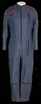 A Starfleet uniform jumpsuit made from the familiar blue material with multiple zippered pockets and zip/Velcro size adjustments at the cuffs and ankles. With a form fitting elastic waist, engineering red division strips around the shoulders, and the famous ‘Enterprise NX-01' assignment patch sewn onto the left sleeve, as well … |