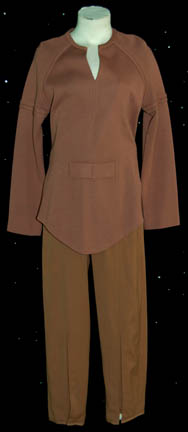 A brown Class-B Starfleet uniform featured in Star Trek I: The Motion Picture. The costume is brown colored trousers with a long sleeved uniform shirt, the sleeves feature piping around the biceps, and a v-neck, and a pair of unattached shoes. The costume comes with an unattached plastic bio-monitor and … |