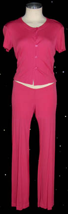 A lot of two costumes for wear in various episodes of Star Trek: Enterprise like “The Seventh”; wherein “T’Pol” (Jolene Blalock) asks “Captain Archer” to assist her in capturing a long elusive, Vulcan fugitive. This lot consists of a short-sleeved, mint-colored, silk-like, pajama top with matching pants, and a low-cut, … |