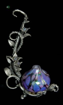 This ornate oil lamp from the Star Trek universe is beautifully made from cast pewter in a vine and jeweled flower design. The oil holder is magically colored in shades of purple and pink that reflect colors of the rainbow in light. Measures approx. 5 ¾ x 4 x 2 … |