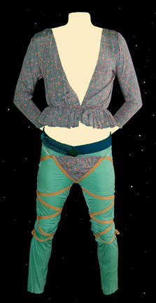 A two piece costume worn by actor John Billingsley during his portrayal of “Dr. Phlox” in the episode “The Forge” of Star Trek: Enterprise. The costume consists of a very soft material with gold piping down either side of the front zip on the jacket, under the sleeves, and flanking … |