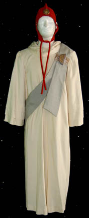 A costume featured in the Star Trek: The Next Generation episode “Firstborn”, wherein a mysterious friend appears to encourage “Alexander's” (Brian Bonsall) development into a Klingon warrior. This costume is a white, textured, long-sleeved, martial arts uniform with a zip up the back, with cuff and collar accents. The name … |