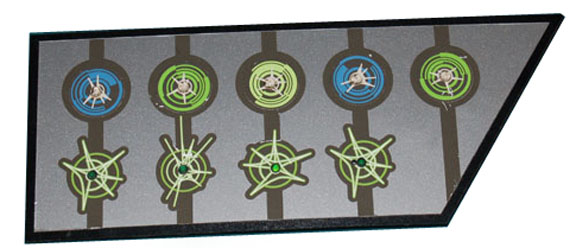 A lot of prop starship consoles similar to those used on the “Enterprise NX-01” and the” NX-Beta” from the episode “First Flight”. These items are paperboard-backed in black, in various shapes, depicting graphics of various ship functions; some small trapezoidal ones appear to be involved with docking procedures, fire suppression … |
