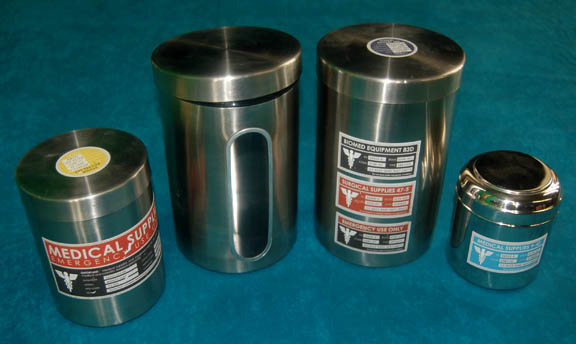 Dr. Phlox's sickbay onboard the NX-01 Enterprise during the Star Trek: Enterprise series was stacked full of containers including these four medical containers used as set dressing. This lot includes two metal containers with oblong clear plastic windows in the side, one has an impressive four Starfleet medical labels on … |