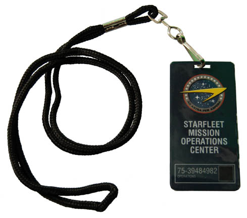 A prop security badge featured in the Star Trek: Enterprise episode “First Flight” for wear by Starfleet characters in the ‘NX Project' locations at Starfleet Command. The item is a blue plastic badge on a black lanyard with a faux magnetic strip on the reverse and depicts the logo of … |
