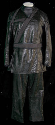 A costume featured in the Star Trek: Enterprise episodes “In a Mirror, Darkly, Parts I and II” for wear by John Billingsley in his portrayal of “Dr. Phlox” in the mirror universe. The costume is black faux leather made with a textured reptile skin pattern, ribbed accents on the shoulders, … |