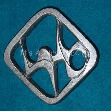 A Klingon unit badge like those featured variously in Star Trek episodic television. The item is made from molded rubber to keep from breaking in production use and painted metallic silver. It is a made to be affixed to Velcro backing or stitched onto the sleeve of Klingon warrior costume … |
