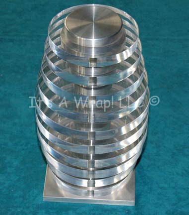 An interesting piece of set dressing that appeared in multiple Star Trek series and can be placed at least in the Star Trek: Enterprise episode “In a Mirror, Darkly: Part I”. The item is a heavy sculpture composed of clear acrylic disks fitted between metal disks on a center pillar … |