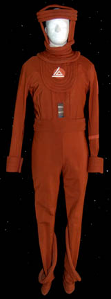 A costume featured in Star Trek I: The Motion Picture for wear by engineers in the tram station where an arriving “Admiral Kirk” (William Shatner) met “Commander Sonak” (John R. Kamal). The costume is a rust brown colored jumpsuit with ringed cuffs and ankles, a headpiece, and sewn on resin … |
