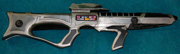 A prop weapon, a Starfleet Type III Mark I phaser rifle in the style which first appeared in Star Trek VIII: First Contact. The item is made from extremely sturdy and durable molded rubber and is in excellent condition. It features metallic silver paint with black accents, applications added for … |