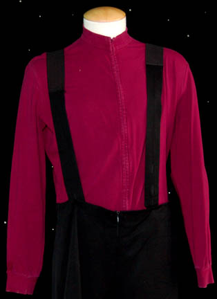 A uniform undershirt to be paired up with a Starfleet uniform worn by Kate Mulgrew in her portrayal of “Captain Janeway” in episodes of Star Trek: Voyager. The item is a gray sleeveless undershirt with a zip up the spine and a high collar. The item features a sewn in … |
