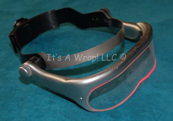 A prop item featured in the Star Trek: Enterprise episode “Rogue Planet” for wear by Eska hunters. The item is a fashioned plastic headband with a size adjusting twist lock in the rear and a clear eye visor on a pivot in the front. A switch on the right side … |