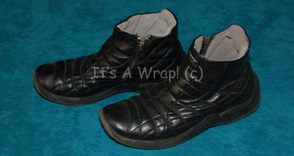 A pair of comfy looking black shoes featured in various episodes of Star Trek: Enterprise for wear by “Dr. Phlox” (John Billingsley). The shoes feature synthetic gray interior lining and black faux leather exteriors with a quilted appearance, an inside the leg zip and retain evidence of use. The shoes … |