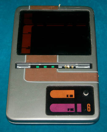 A 24th Century style Starfleet Personal Access Display Device (PADD). The PADD is plastic painted silver with an LCARS style inset multicolored display screen that reads “Routines and Formation – 47”. It was presumably used on Star Trek: Deep Space Nine since the LCARS display shows a “Planner Mode” and … |