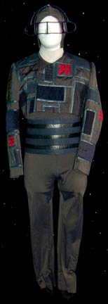 A costume featured in the Star Trek: Voyager episode “Day of Honor” for wear by Michael Krawic in his portrayal of ‘Rahmin', an alien whose species was assimilated into the Borg Collective. The costume consists of a full length sleeveless jumpsuit and a matching asymmetrical waistcoat. The costumer’s tags indicate … |