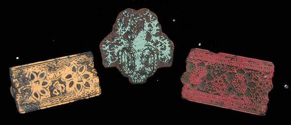 This amazing prop will not only serve as an interesting painting stamp, but will look amazing atop your coffee table or fireplace mantle. Made of abstract shapes of dark stained wood, they have a handy handle on the back that fits nicely in your hand. The stamps are burgundy, sage … |